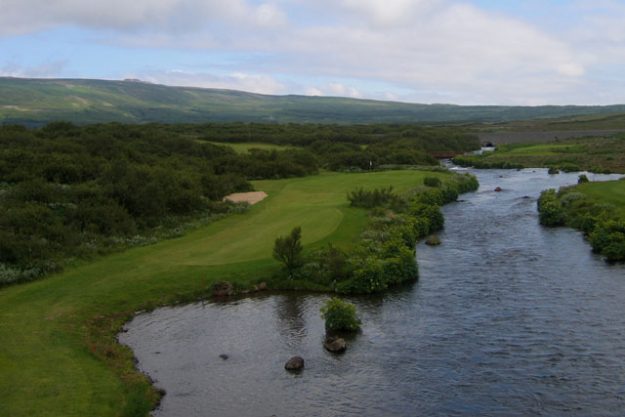 Two rivers dominate the site and come into play on every hole. The fairways are bordered by the native roughs sporting shrubs and heather. The style of bunkering is unique in Iceland, where the heather creeps around the rough edges, giving a natural feel and character to a course that was laid out with minimal disturbance to the existing terrain.