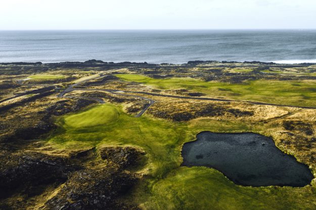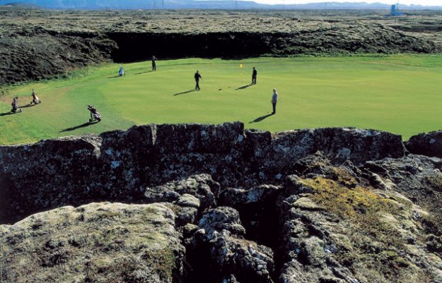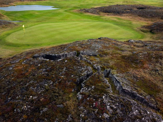 The Keilir golf club was founded in 1967. The club was able to acquire a spectacular land on the Hvaleyri peninsula for a nine hole golf course. At that time there were few small farms on the peninsula but with the help from the town council of Hafnafjördur the club was able to get the land for the golf course. The land was ideal for a golf course and a former national champion design the first 9 hole golf course. In 1971 the club got the Swedish golf designer Nils Skjöld to design a new 12 hole golf course on the peninsula. The construction of the new front nine in the lava field was finished in 1997 and since then the golf course has been an 18 hole golf course.
