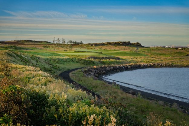 The Hlíðavöllur course is truly a feast for the eyes. The very first impression is the stunning views and great food in the modern clubhouse. Perfectly visible on clear days over the water looms the snow-capped glacier of Snæfellsjökull. The 18-hole championship course plays down and along the ocean, with the bay and majestic Esja mountain as a backdrop. In the summer, colonies of Arctic Terns nest by the shores of the 12th -14th holes. It’s quite an experience to get so close. The relatively ample fairways, large greens and excellent condition of the course will assure that your round is nothing but pleasure! Meanwhile, the jagged rocks of age old lava wait in the rough to challenge expert golfers.