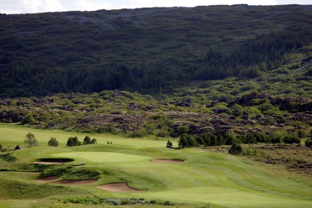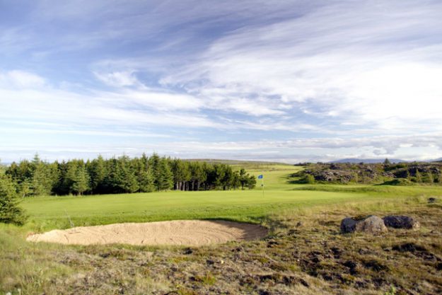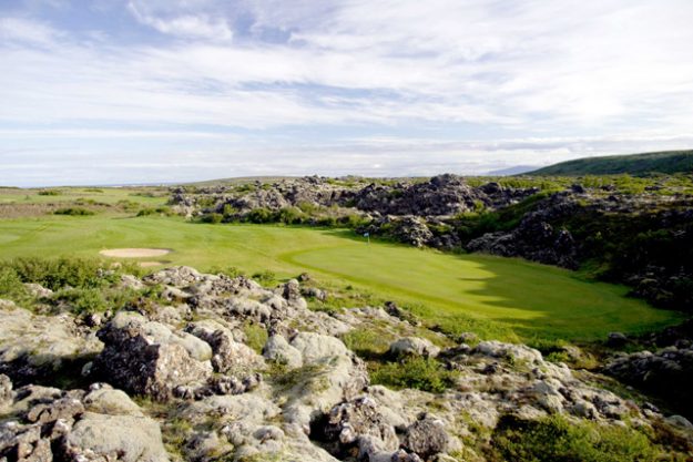 The golf course is a heathland course flanked by lava from the dormant volcano Búrfell. The clubhouse, which overlooks the eighteenth and the ninth green, features a bar and a restaurant. You can enjoy light snacks or full meals in a friendly, relaxed atmosphere. The Pro Shop and changing rooms are also located in the clubhouse.